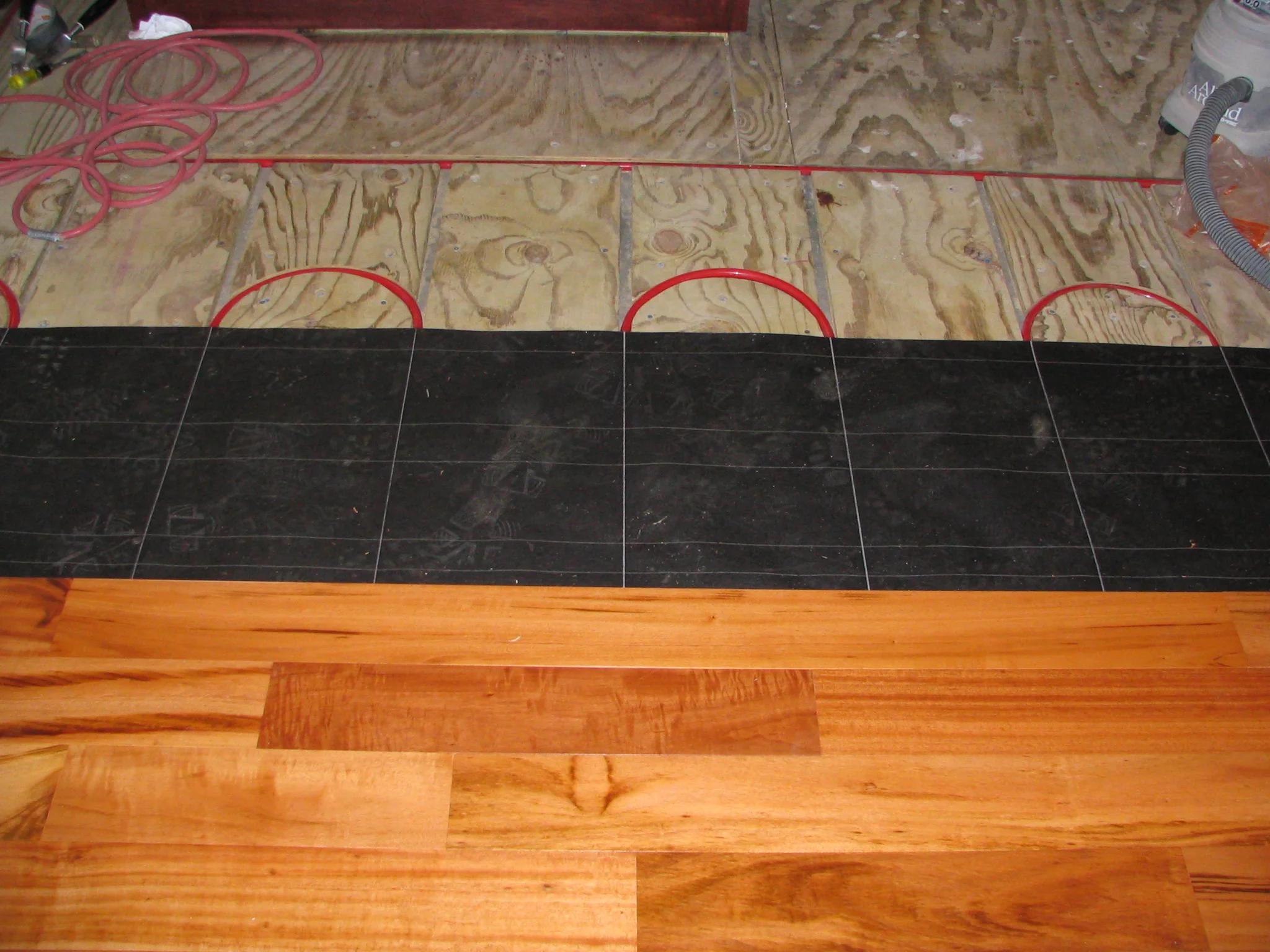 3/4” Tiger Maple hardwood installed over Geothermal Radiant Heat System.